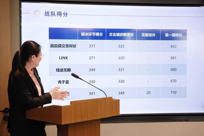 高级合伙人、执行合伙人 施汉锋律师 现场统分完成后,主持人公布本期各组得分,祝贺表现优异的团队,也鼓励全体学员再接再厉、再创佳绩。